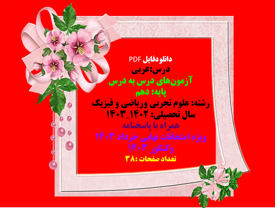 قیمت: 46٬000 تومان - دسته بندی فایل: عمومیدرس عربی آزمون های درس به درس پایه دهم نوبت خردادماه رشته علوم تجربی وریاضی همراه با پاسخنامه