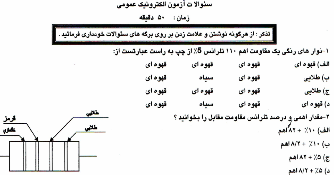 صفحه محصول - سوالات آزمون پایان دوره الکترونیک عمومی - 4 صفحه - pdf